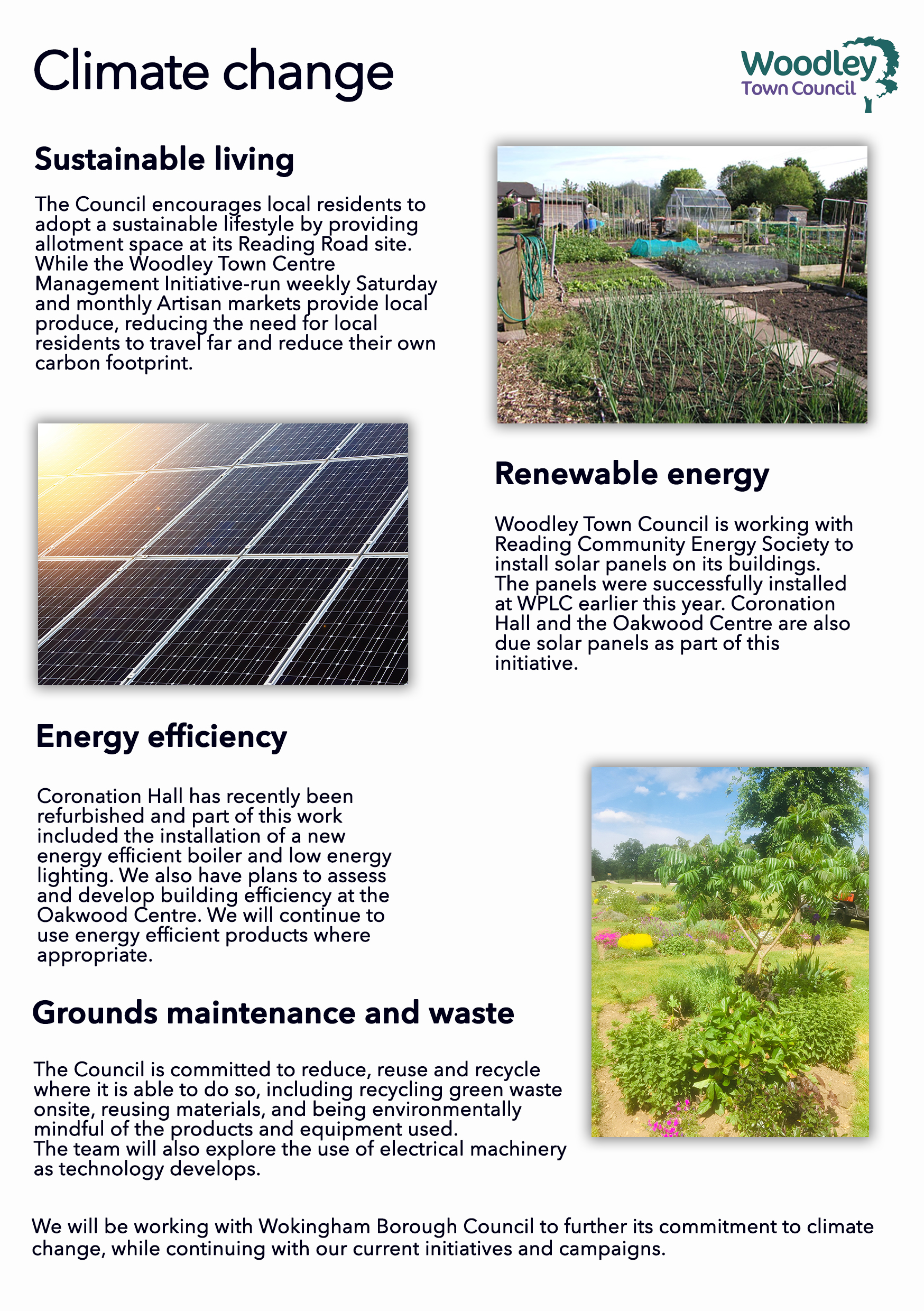 Meanwhile, Woodley Town Council will also continue its commitment to climate change through its current campaigns and initiatives.