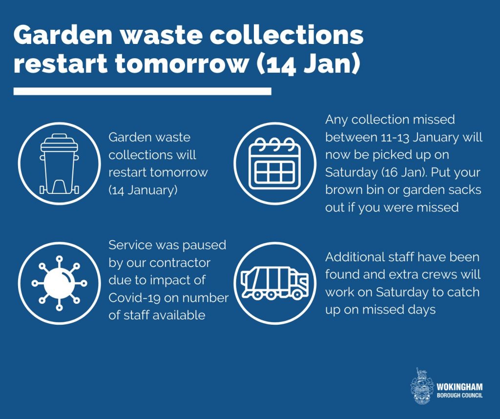 Garden waste collections in Wokingham Borough, which were previously suspended due to Covid-19 cases are now reinstated.