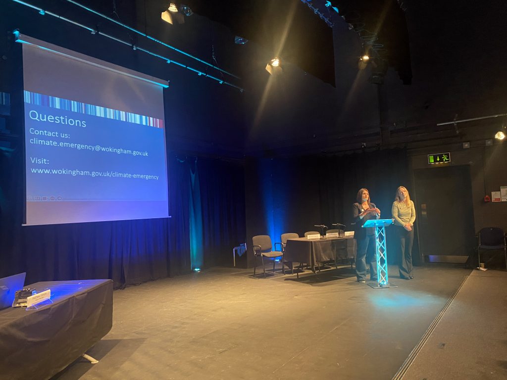 A presentation on Climate Emergency was delivered by Climate Officers Resh Thorpe and Mhairi Adams from Wokingham Borough Council (WBC) and Matthew Filmore, Woodley Town Council Deputy Town Clerk. The presentation provided an update on actions taken so far by the Borough and Town Councils and also focused on the importance of individual participation to help reduce carbon emissions.