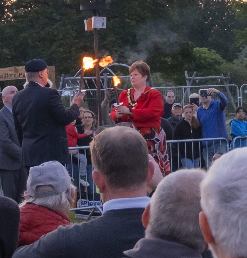The speeches were followed by Mr Anderson and Woodley Town Mayor, Cllr Juliet Anderson, lighting the Beacon at 9.15pm alongside the rest of the nation, representing the Light of Peace. This was followed by sounds of gun fire and the National Tribute, read by Woodley Town Deputy Clerk, Matthew Filmore.