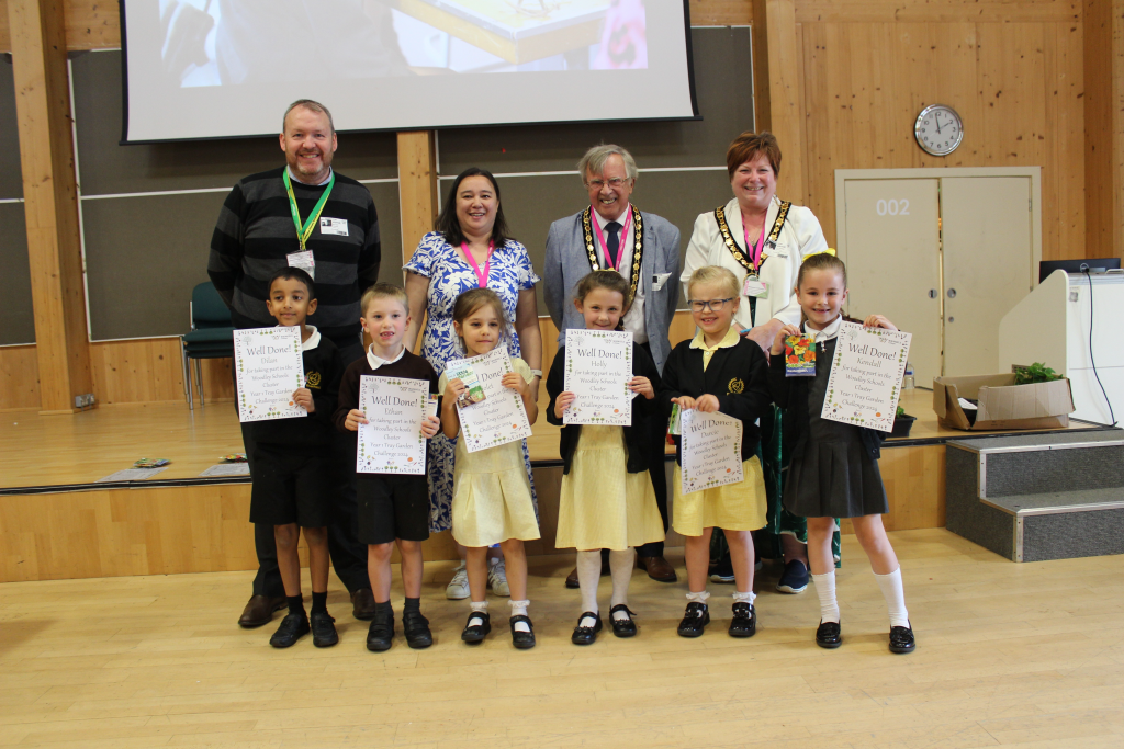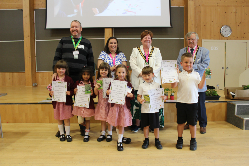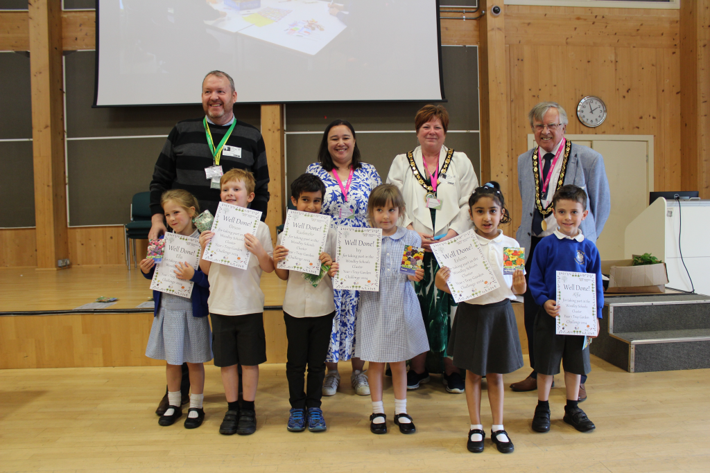 Woodley Town Council Mayor and Deputy Mayor judge Woodley schools’ Tray Garden Challenge