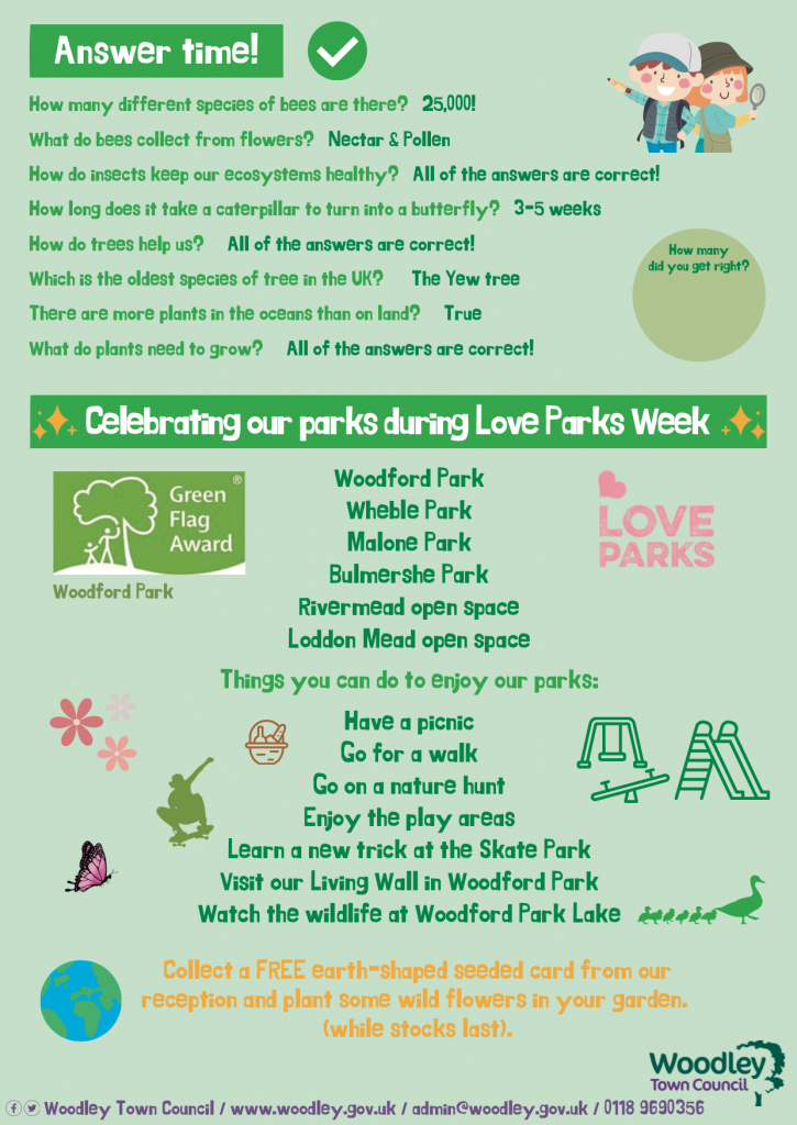 To help celebrate our parks and green spaces, we have created a biodiversity quiz, which we hope will also entertain the kids over the summer holidays and inspire them to spot biodiversity across Woodley.