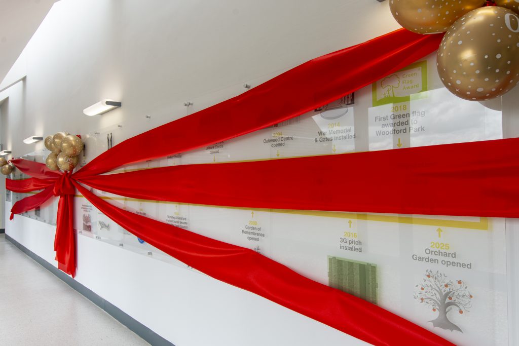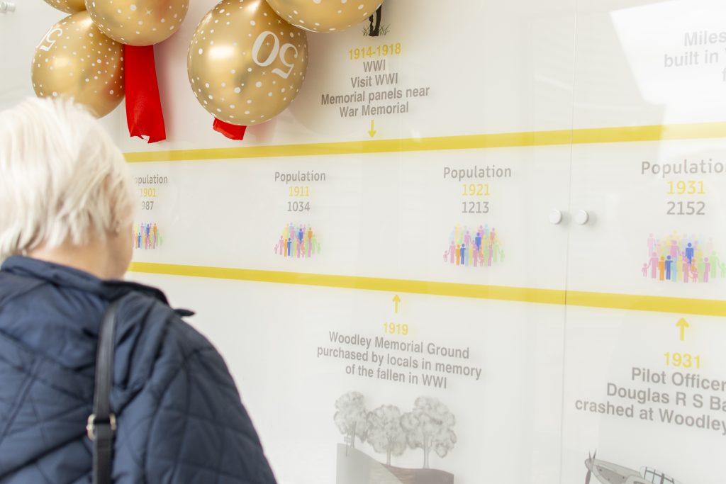 In celebration of the 50th Anniversary of Woodley Town Council, a brand-new History Wall has been installed in the Oakwood Centre, offering a fascinating journey through Woodleyâs rich and evolving history. From its early days as a âclearing in the woodsâ â the origin of the townâs name â to the vibrant, thriving community we know today, the History Wall presents key milestones in both Woodley and the Town Councilâs development.