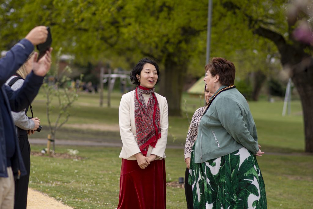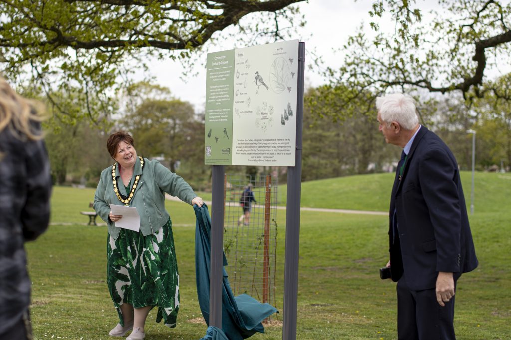 The unveiling of both the Coronation Orchard Garden and the History Wall was well-attended by a host of local dignitaries and community representatives. Guests included Woodley & Earley MP Yuan Yang, past and present Woodley Town Councillors, and Woodley Town Crier Tony Roper. Also in attendance were representatives from community groups who regularly work in partnership with the Council, including Woodley Carnival, Friends of Woodford Park, Woodley Bowling Club, and WASP (Woodley Adopt A Street Project).