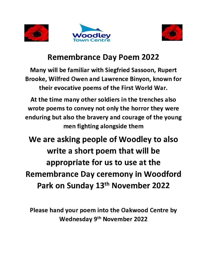 Woodley Memorial Remembrance 2022 is also running a poetry competition and a poppy quiz in Woodley Town Centre from November for children of all ages to join in with. Please contact Woodley Town Centre manager, Brian Fennelly, for more information: [email protected].