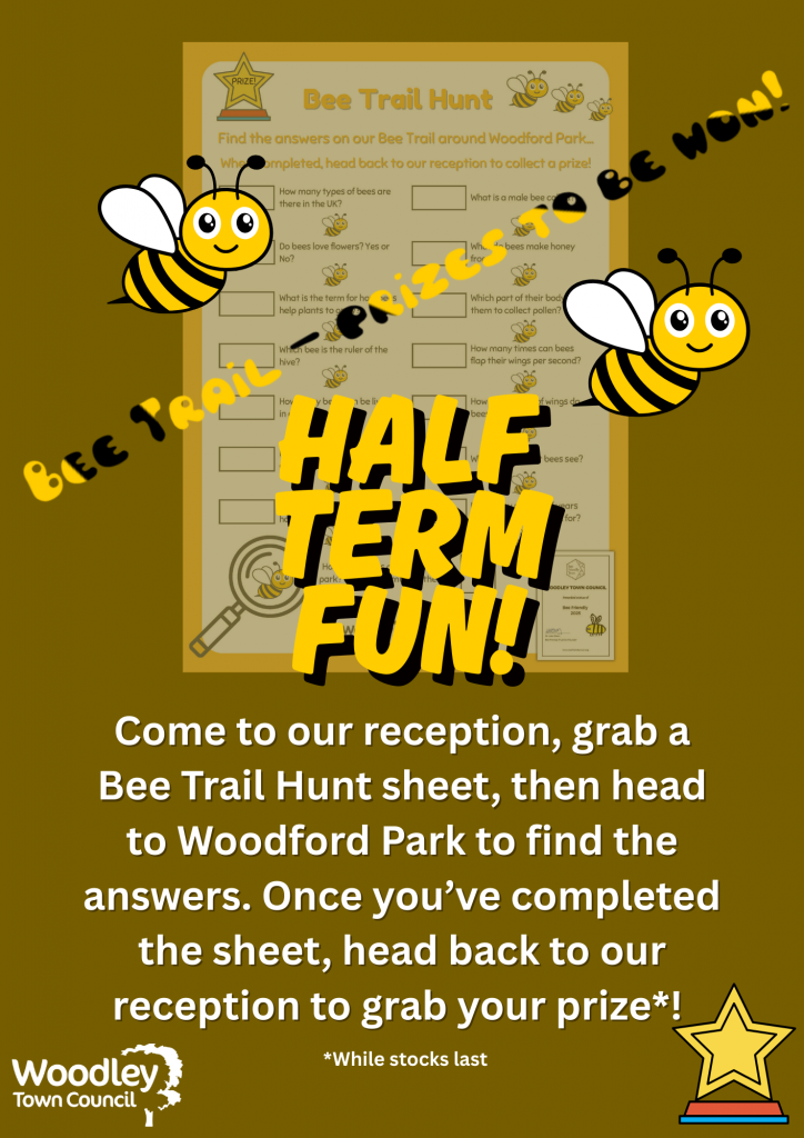 We now have an exciting Bee Trail across Woodford Park. During the May Half Term, children can collect a quiz sheet from our reception to complete using the facts around the trail. Once completed, head back to our reception to claim a prize (sweets and a packet of bee/butterfly wildflower seeds).
