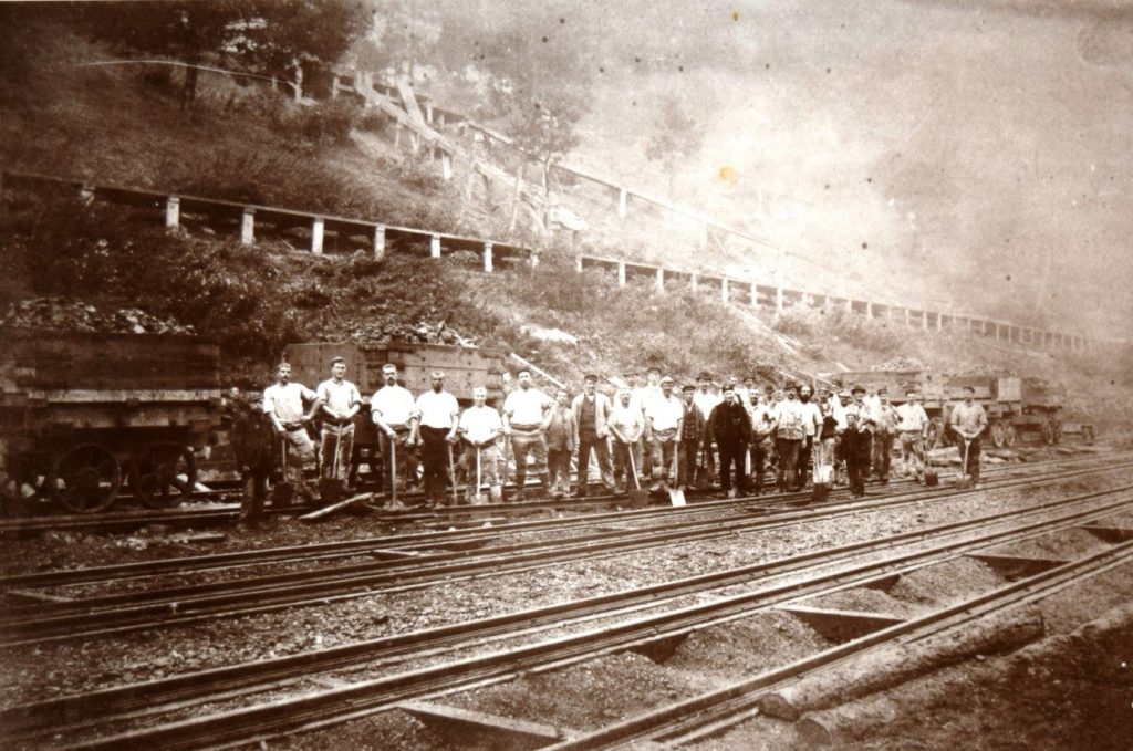 Two further illustrations of the widening of Sonning Cutting. Above. A fine body of navies pose for the camera. To the right is, a âGin Run,â for taking the soil up the near vertical side.