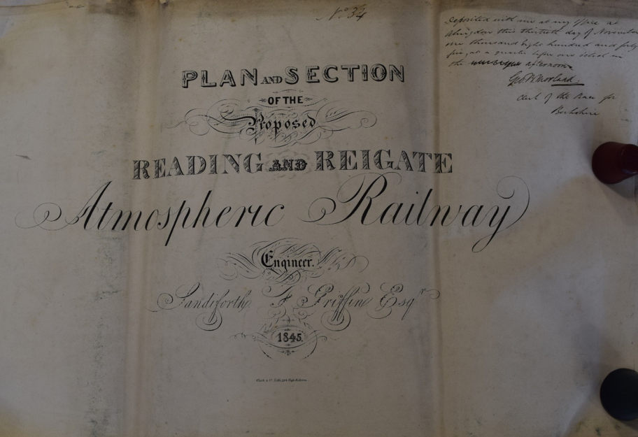 Reading and Reigate Atmospheric Railway Plan and Section of 1845. Photo courtesy of Paul Joyce