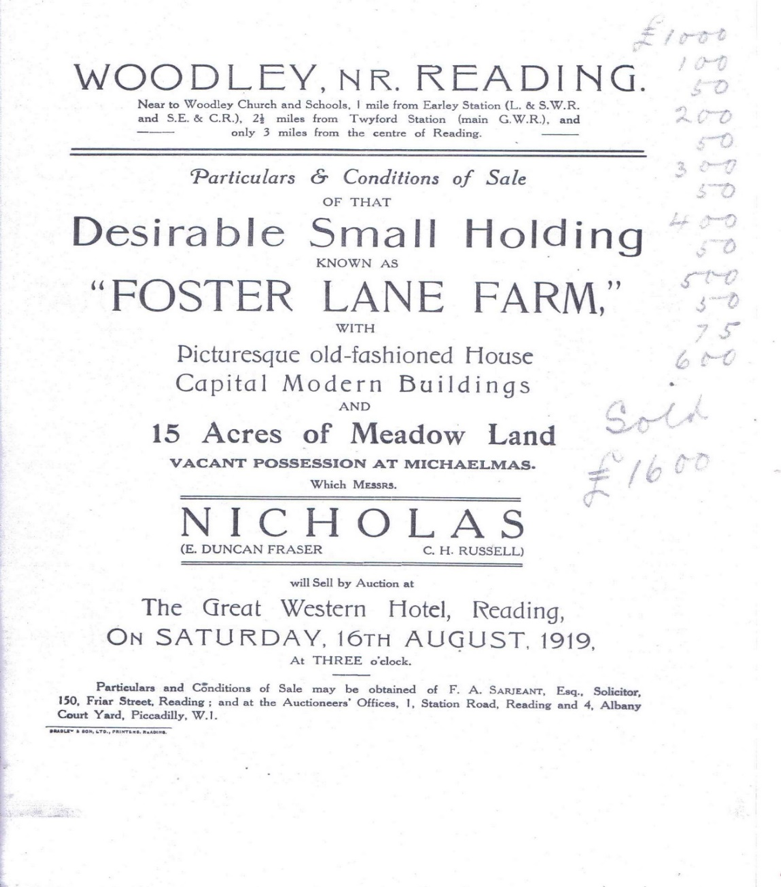 Foster Lane Farm was sold in 1919 as a small dairy farm.