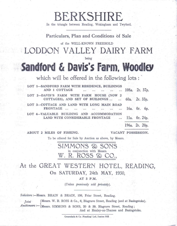 In 1930 Sandford and Davisâs Farm, east of Eleven Elms and west of the River Loddon, was auctioned. Both together were called Loddon Valley Dairy Farm. It included two miles of fishing rights on the River Loddon.