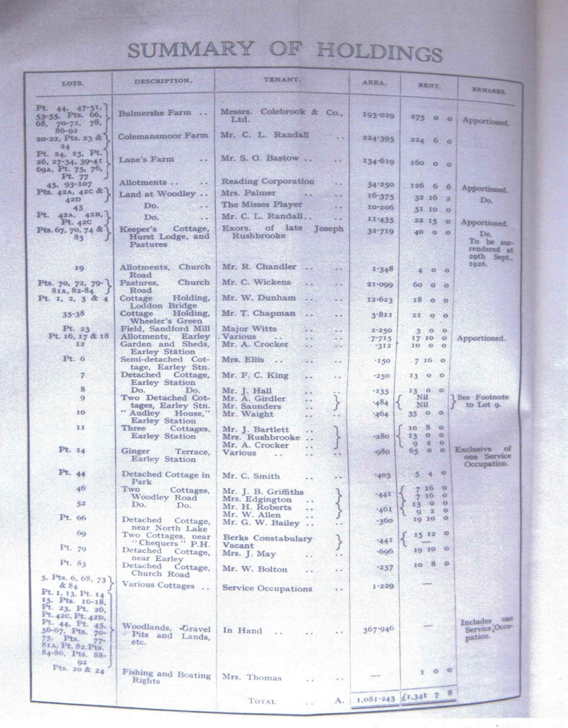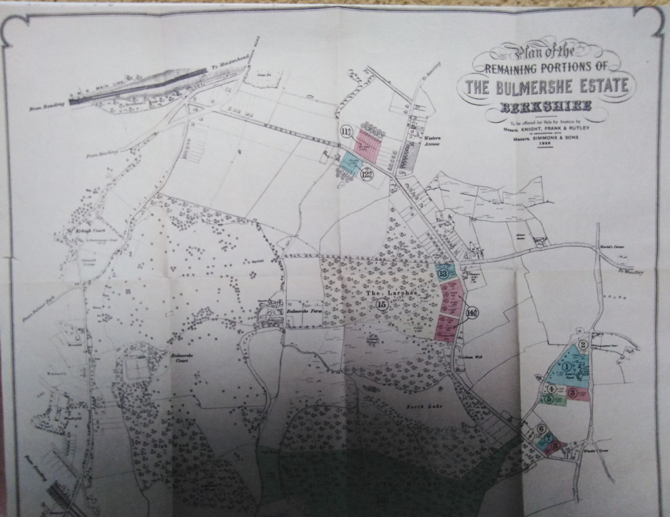 It was sold by auction as â1081 acres, the major portion of which is ripe for immediate development.â It was sold as 107 lots and the big house Bulmershe Court was Lot 1.