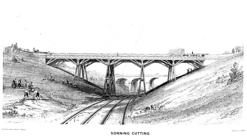 The picture is of the original bridge which carried Warren Road over Sonning Cutting. In 1893 the Great Western railway converted from broad gauge to standard gauge. The cutting was widened and deepened to take 4 tracks and the bridge was altered to the one we know today.