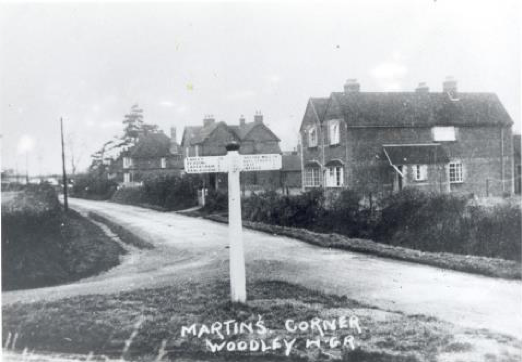 At a meeting of Woodley Parish Council in 1931, the members discussed a request from the Post Office to display road names. Some of the roads had more than one name, often known by the name of the landowner or local resident, and this was making it hard to deliver letters and telegrams promptly. In 1932 they agreed to name the road from The Chequers to the Bath Road: Reading Road. The road from The Chequers to Cobbler’s City would be Headley Road. The road from Martin’s Corner (now the Just Tiles roundabout) to the Southern Railway bridge would be Loddon Bridge Road. The road from Martin’s Corner to the Great Western Railway bridge would be Butts Hill Road. Oak posts with boards with four- inch lettering in black on white would be erected to name these roads.