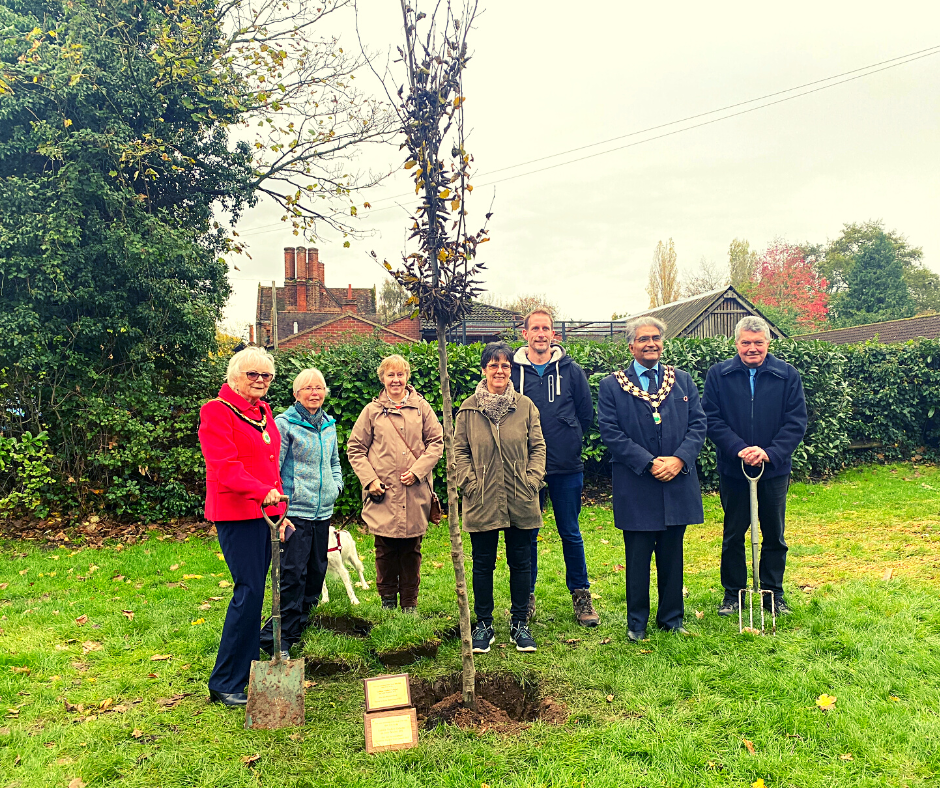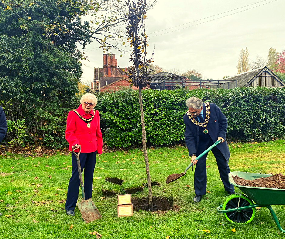 Earley Town Mayor, Cllr Tahir Maher and Woodley Town Deputy Mayor, Cllr Kay Gilder, attended the memorial to unveil the tree and plaques.