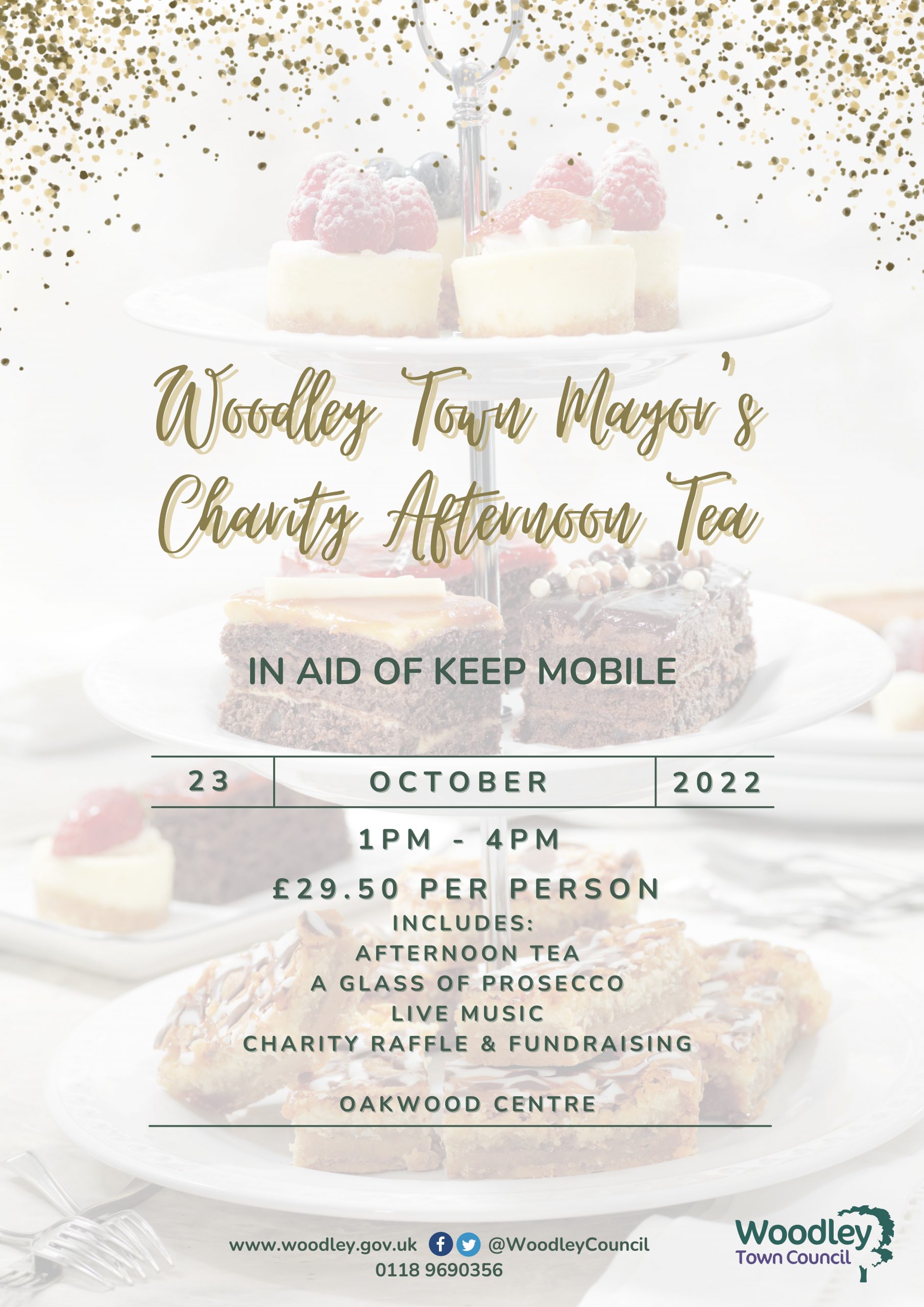 The event will be held at the Oakwood Centre on Sunday 23rd October 1pm – 4pm and guests will be entertained with live music, while enjoying a delicious Afternoon Tea of assorted sandwiches, cakes and scones, served on vintage crockery, accompanied by tea or coffee and a glass of Prosecco.