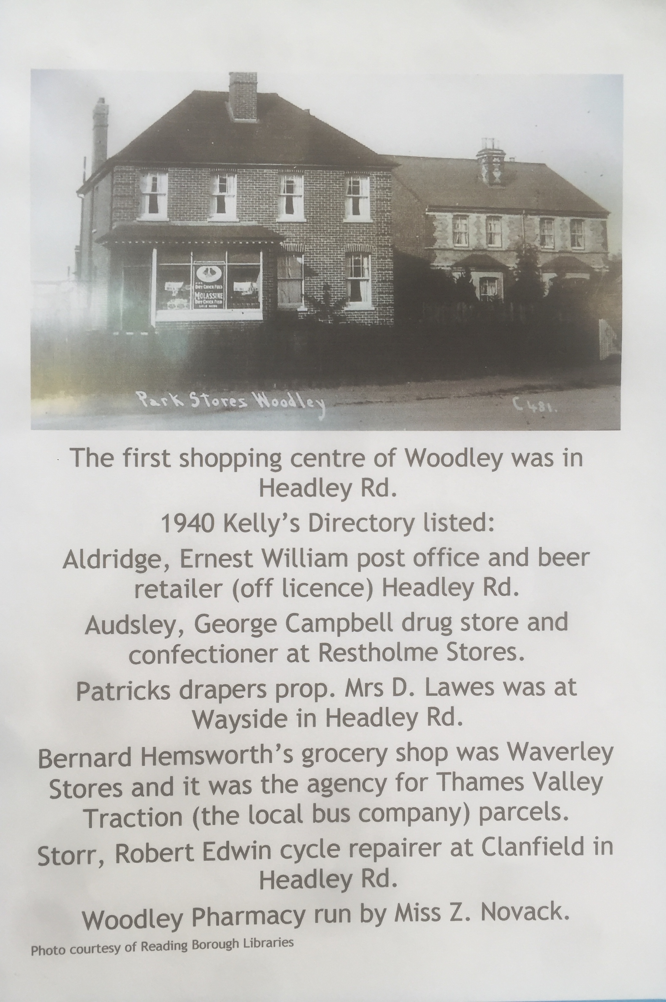 The project, in conjunction with the Wokingham U3A, the Reading U3A and partnered with Woodley Town Council, Woodley Library, the Museum of Berkshire Aviation, Reading Borough Libraries and the Berkshire Record Office, explores the history of Woodley’s shops, dating the first shop to circa 1854.