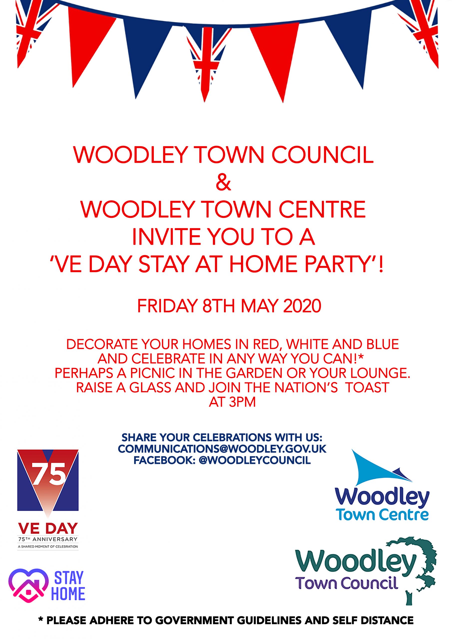 Woodley Town Council and Woodley Town Centre would like to encourage its residents to participate in a ‘Stay at Home Party’ while adhering to the social distancing rules. Why not host a picnic in your garden or lounge and decorate your home red, white and blue? Here are some suggestions from the official organisers – don’t forget to join in with the National Toast at 3pm and make this an unforgettable celebration from the safety of your home.